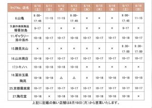 なお、清水焼団地内の各店舗は以下の通り営業しております。