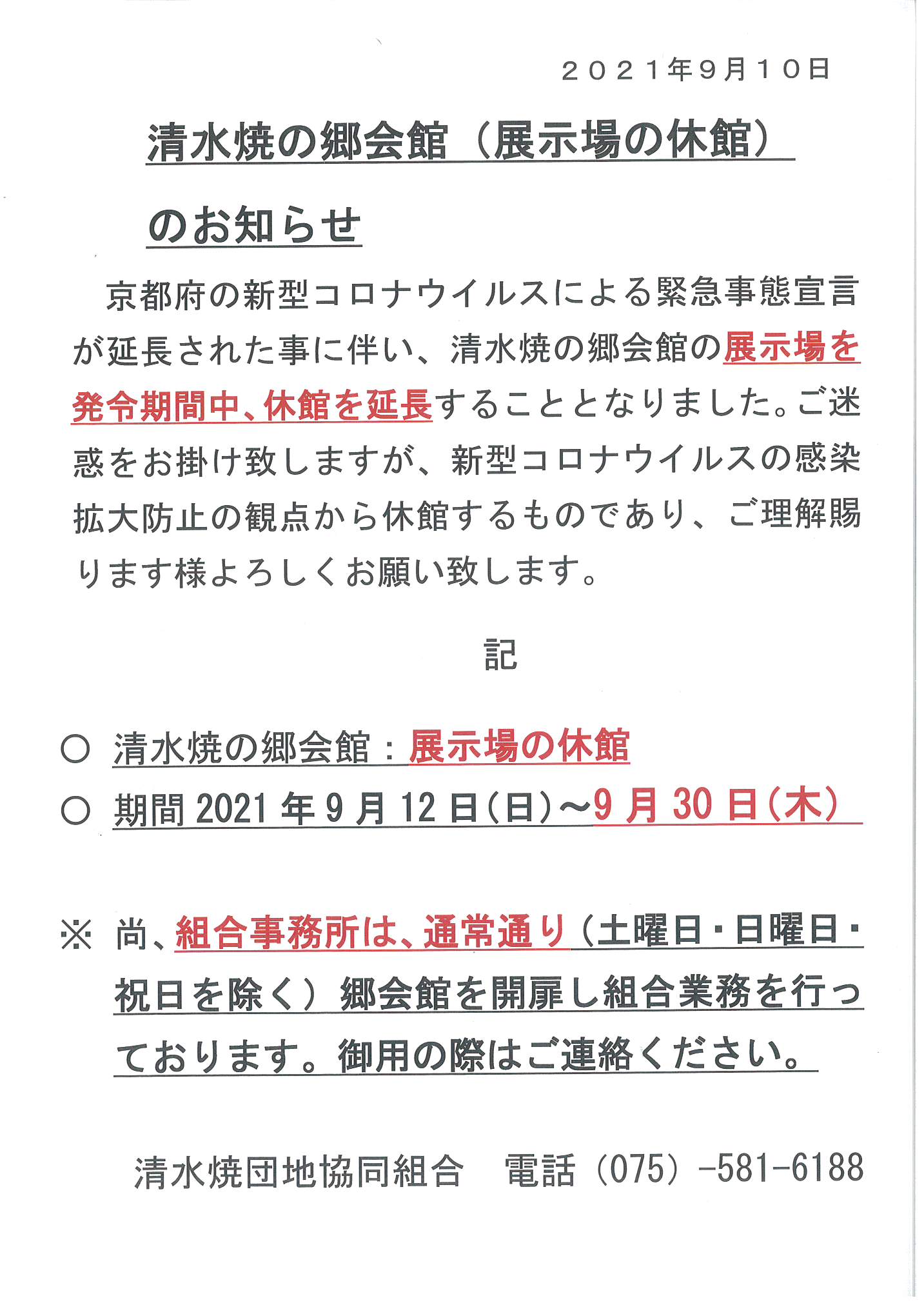 清水焼の郷会館のお知らせ