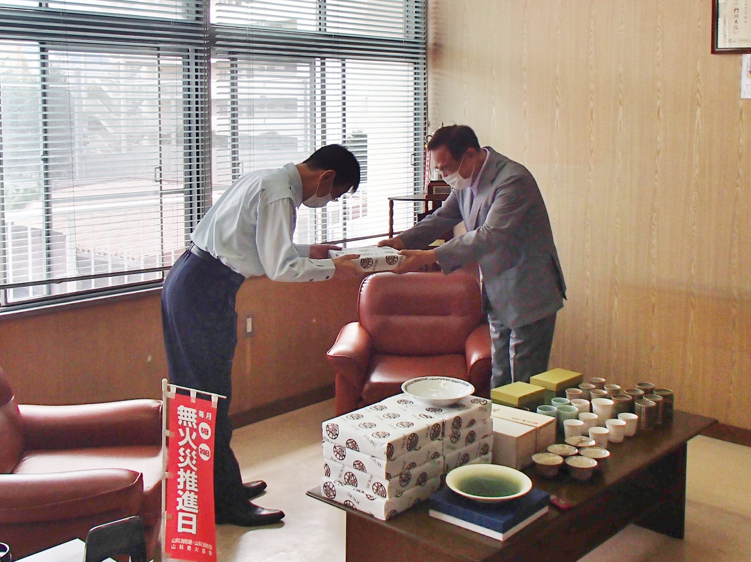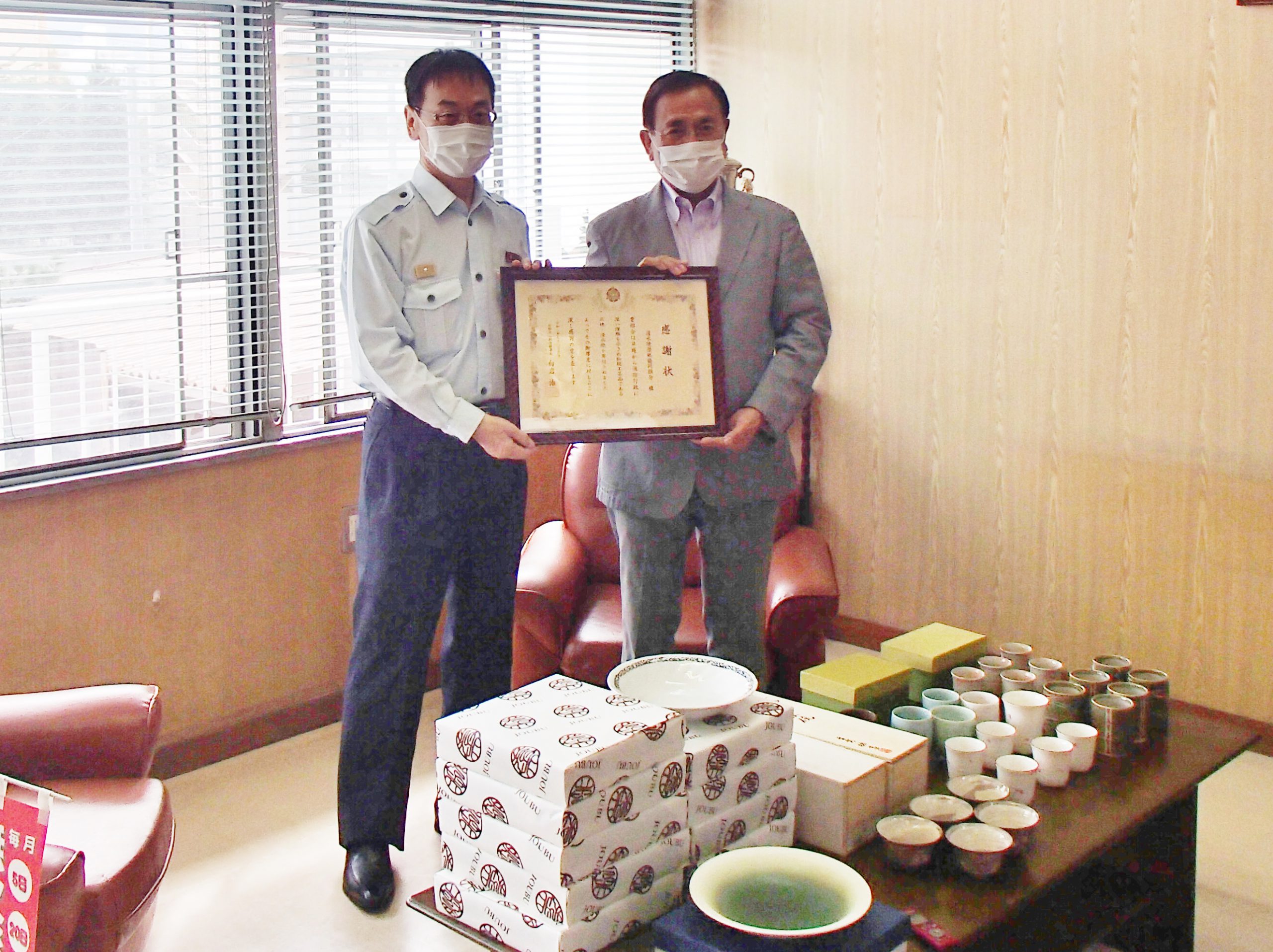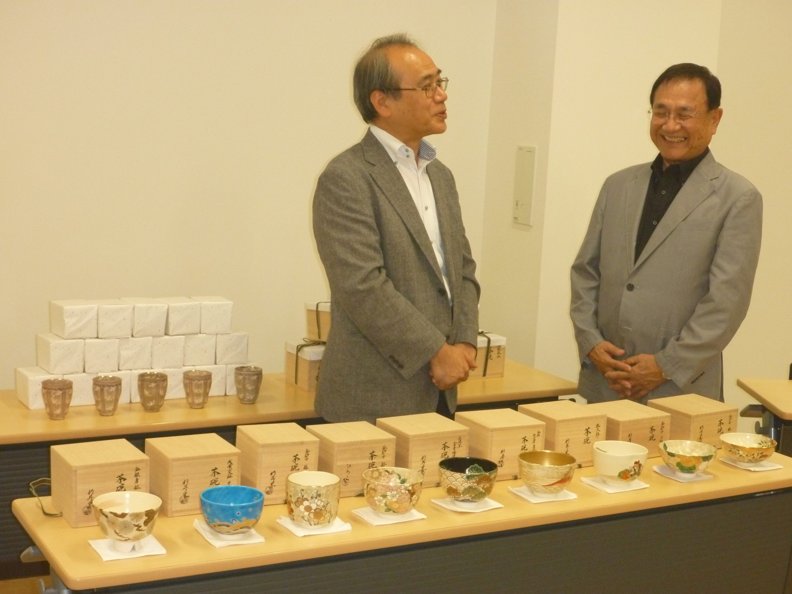 組合には団地を拠点にする窯元や原料製造などの61事業者が加入しています。作家らの所属する1事業者につき10万円分の器を買い取り、9月から寄贈を始めました。山科区内の大学、消防署、高齢者施設などに順次届けていく予定です。
