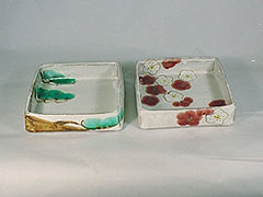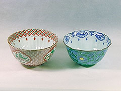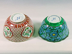 陶花堂で特徴的なのは、割烹食器を始めとする器たちが、京焼の流れを汲むものであること。京焼とは、一般的に、江戸時代に活躍した陶工、野々村仁清、仁清の弟子であり琳派の尾形乾山らが確立した色絵陶器や、唐草、法曹華といった、中国明代に影響を受けた花鳥文様=「祥瑞(しょうずい)文様」が描かれた「呉須」、「呉須赤絵」などのこと。広く愛されてきた先人たちの意匠の“写し”を陶花堂は手掛けている。