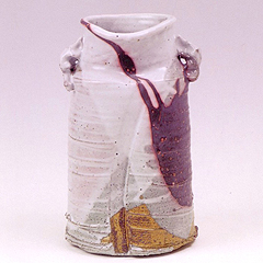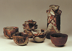 愛媛県の山に赴き、土を採取。粘土つくりから始め、「緋幻釉(ひようゆう)」という自作の釉薬を用い、陶器へと完成させる。
