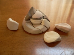 色土を幾層にも重ね合わせて作る練り込みの過程は、気の遠くなるような時間を経るが、その中でまた、新たな着想を生み出す。有岡さんの想像力もまた尽きることなく、見る者を楽しませてくれるだろう。
