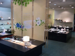 地下1階の「news」は、若手アーティストなどのコンテンポラリー作品を集めたモダンな空間。1階は、季節や流行を敏感にとらえた創作陶器が並び、毎月の展示替えで設えが一新するため飽きがこない。中2階は、全国でも類を見ない600種にも及ぶご飯茶碗が一同にそろう「ご飯茶碗365日」。2階の「特選サロン」は京焼・清水焼をはじめ、季節を先がけた器の数々。3階は「工芸サロン」として、2週間に1度作家による展示会が行われている。陶器だけでなく、テキスタイルや漆器といった様々なジャンルで展開されるのも魅力だ。